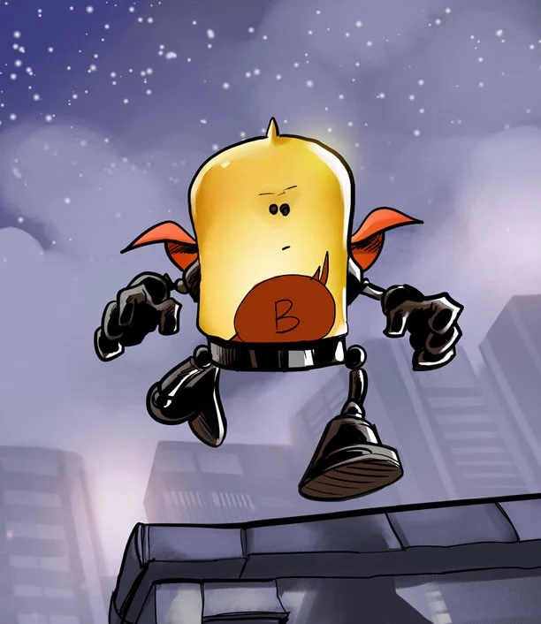 Se trata de un bulbo animado con poderes quien se dedica a salvar el mundo manteniendo a la par una labor de héroe freelance.