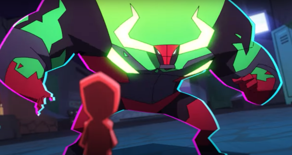 Tiene la apariencia de un toro humanonide gigante, de máscara roja, con ojos verdes, cuernos y una llamarada roja saliendo de su cabellera.