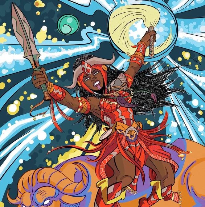 Iansa es la Orixa de los vientos y las tempestades, esposa de Xango y protectora de Brasil.
