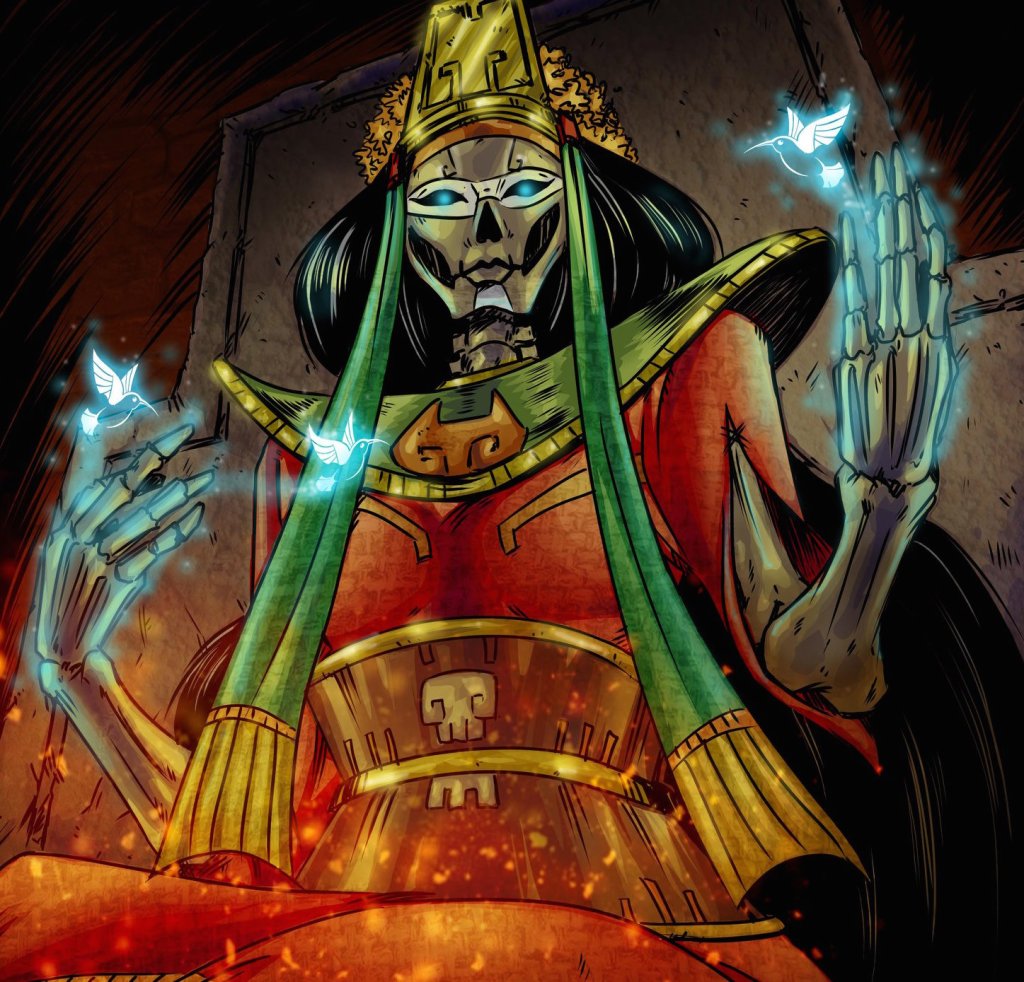 Más adelante, Mictecacíhuatl se enfrenta contra Temak y Xolot y es derrocada, junto a su esposo, del trono del Mictlán quedando sellada en una lápida. En sus últimos momentos, la diosa logra desvincular a los Emisarios del Mictlán de su control para de esa manera evitar que caigan en las manos de Temak y Xolot.