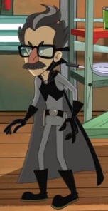 Porta un traje de supervillano gris con chaleco, capa, cinturón y botas negras, el cabello gris con forma de flama y lleva lentes con nariz postiza y bigote aparentemente postizo aunque hasta ahora no se sabe con certeza si tal bigote y nariz son realmente suyas o si son parte de algún disfraz.