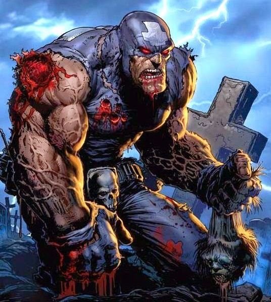 Es un hombre fornido de ojos rojos que viste un traje azul con una máscara azul de cruz blanca sobre la frente.