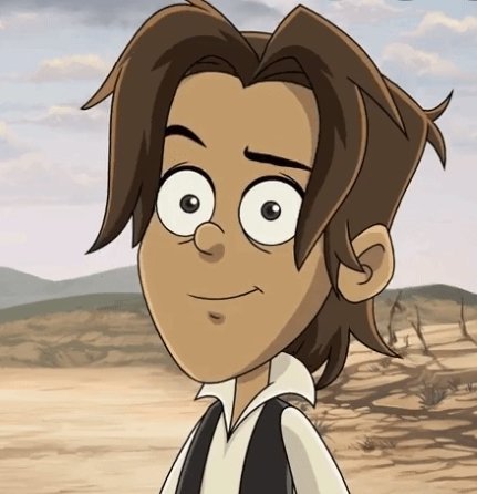 Es un joven de cabello castaño y largo quien suele vestir una camisa caqui y un chaleco negro.