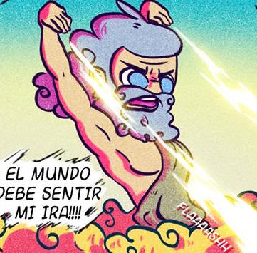 Zeus es uno de los dioses que aparecen en las historietas de Pedro Larez.