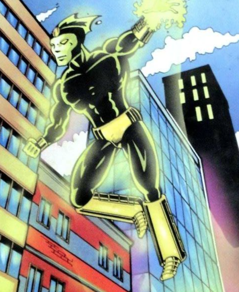 Al obtener superpoderes, este individuo decidió convertirse en un superhéroe no para ayudar a la gente sino para volverse famoso. Fue así que se hizo con el manto de Neónman.