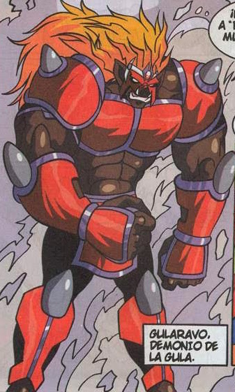 Nótese que el nombre de este personaje, Gularavo, incluye el morfema «Gula» haciendo referencia al pecado capital que representa.