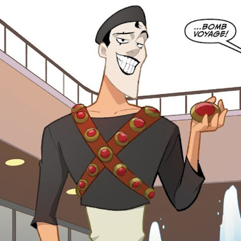 Bomb Voyage es un supervillano de películas estadounidense que aparece en cortos mexicanos. Fue introducido a ellos por Camila Aurora para el cortometraje de Johanne Sacrebleu.