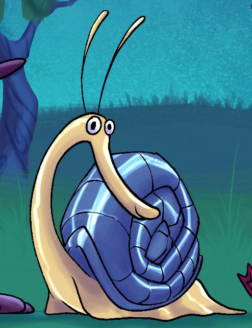 Es un caracol camello con un caparazón azul.