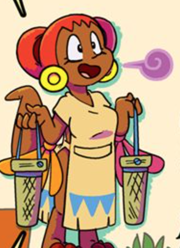 Es una mujer coatlalteca con cola y cabello rojo.