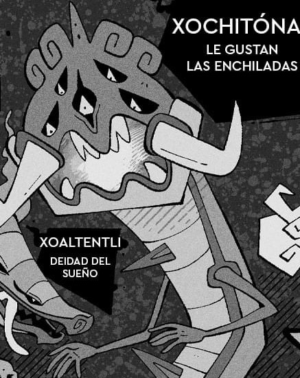 Xochitonal es un lagarto monstruoso que custodia el río de Apanohualcalhuia en el Mictlán.