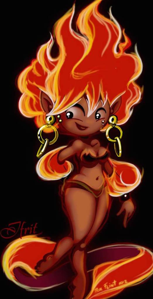 Ifrit es una genio de fuego, y aunque es muy amable y tiene las mejores intenciones, si le pides un deseo prepárate para salir rostizado, al vapor o chamuscado.