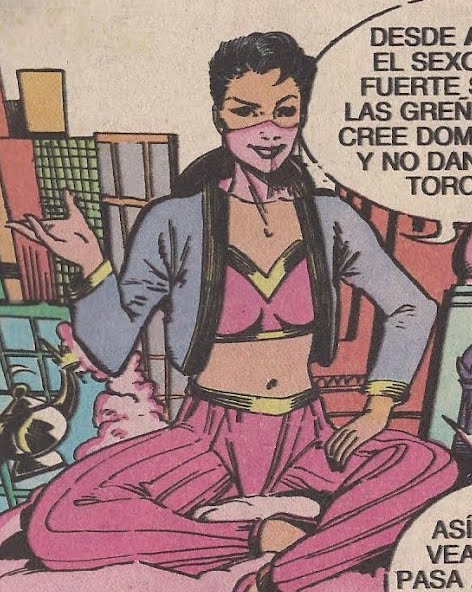 Apareció por primera vez en La Lámpara de Ah… Ladina #1 donde si bien no es un personaje que participe en las historias, es narradora.