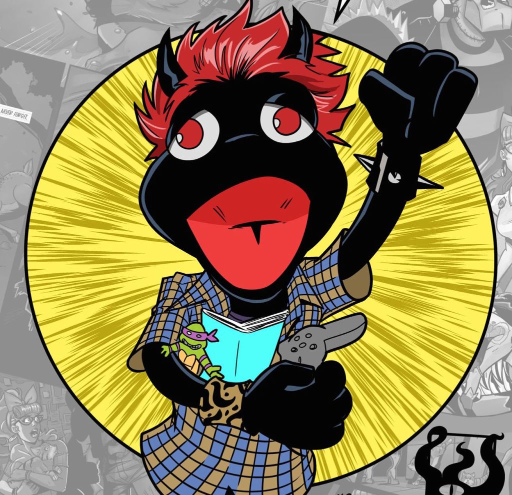 Es la marioneta de un demonio negro con ojos rojos, cuernos, piel oscura, pelirrojo y que viste camisa a cuadros además de pulseras punk.