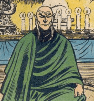 Es un hombre anciano, calvo, de patillas blancas y que suele vestir una túnica verde.