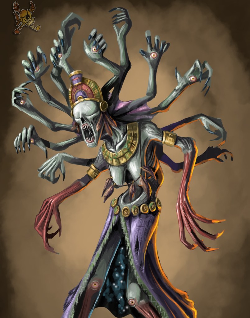 Por sí sola engendró a los dioses Ehécatl y Tlacatecólotl.