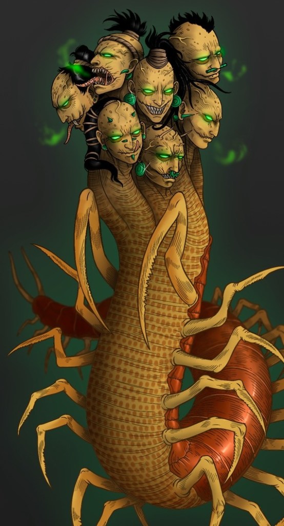Se le describía como un ciempiés gigante de siete cabezas humanas.