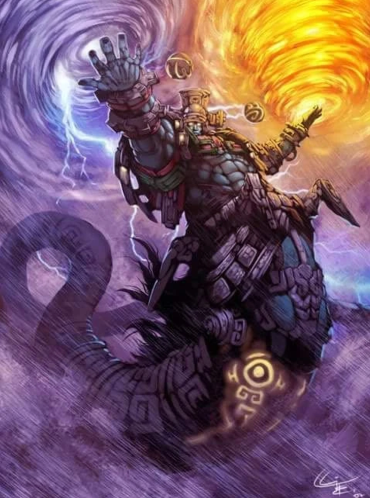 Hurakán fue creado por Hunab Ku, junto con Kukulkán y Tepeu.