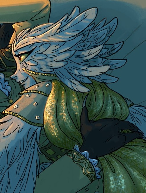 Es una hermosa mujer grifo de plumaje blanco.