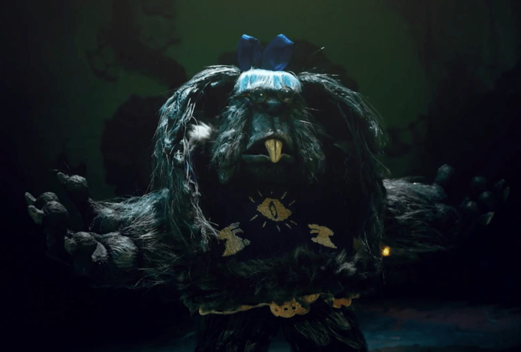 Es una mujer anciana de vestido azul, lentes y peinada con dos trenzas, quien puede transformarse en una mujer anciana con rostro de conejo.