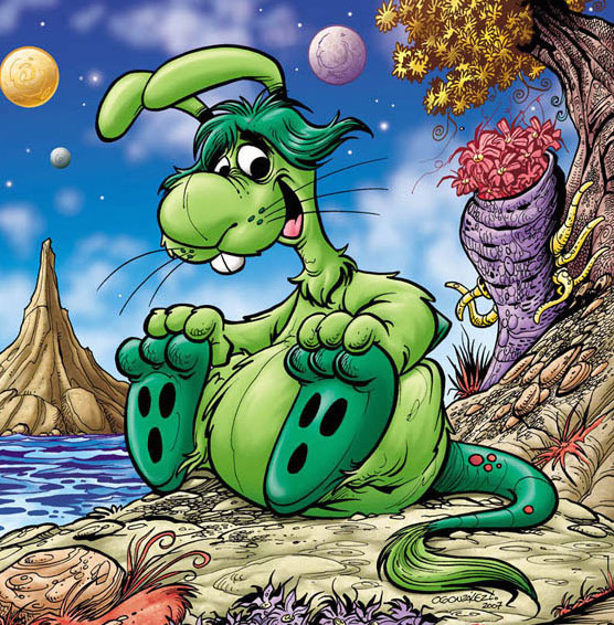 Tiene la apariencia de un pequeño conejo peludo verde con cara de perro, dientes y patas de conejo, cola de venado y pequeñas alas de dragón.