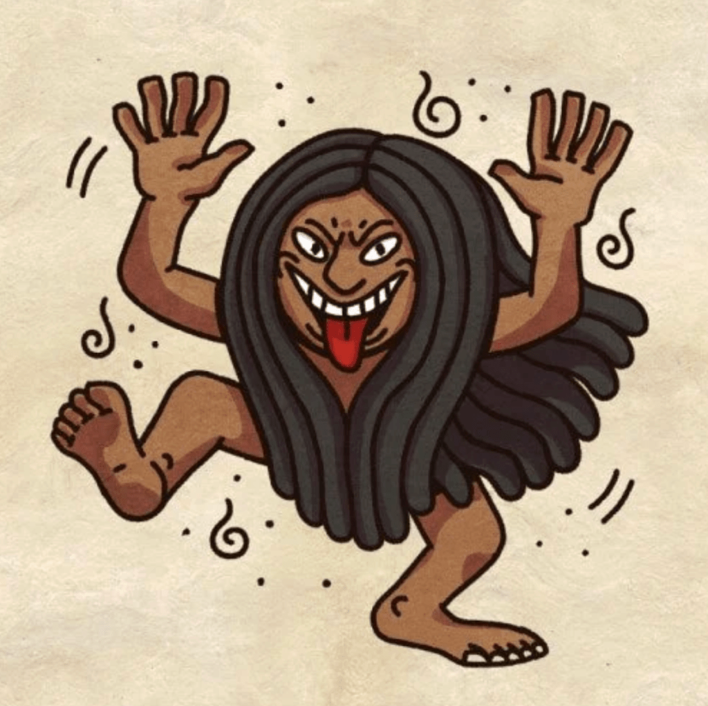 Se trata de una mujer de corta estatura quien era augurio de muerte o infortunio.
