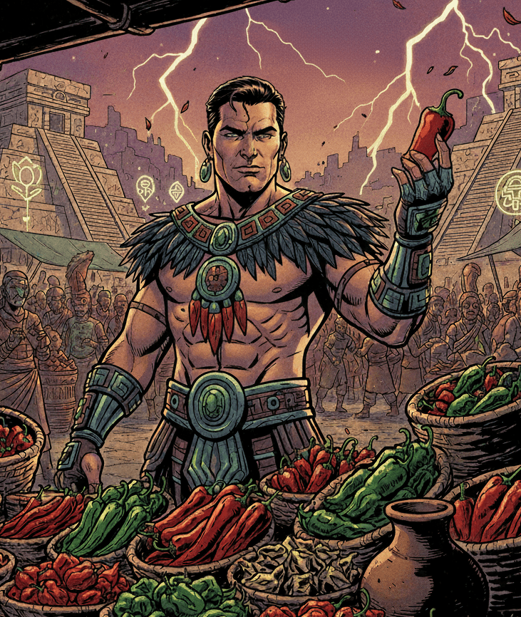 | Ocupación: | Vendedor de Chiles Semi-diós Príncipe Tolteca |