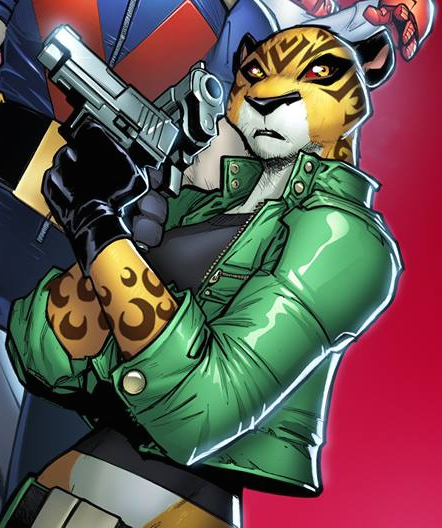 Porta una camisa negra, chaqueta de cuero verde y pantalón negro. En su versión original tiene la apariencia de un chita macho. Actualmente, como se podrá observar en las imágenes, su apariencia es femenina debido a un interés por volver a este personaje una mujer.