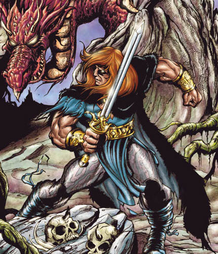 Es un guerrero de cabello anaranjado quien viste atuendo azul o gris y capa negra. Porta además la espada de Excalibur en una funda con el emblema kundalini.