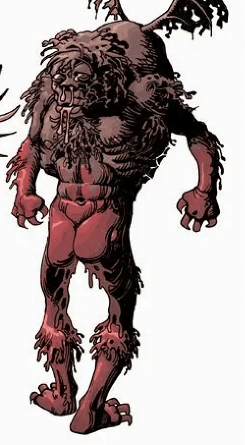 Se le representa cubierto de basura y desperdicio.